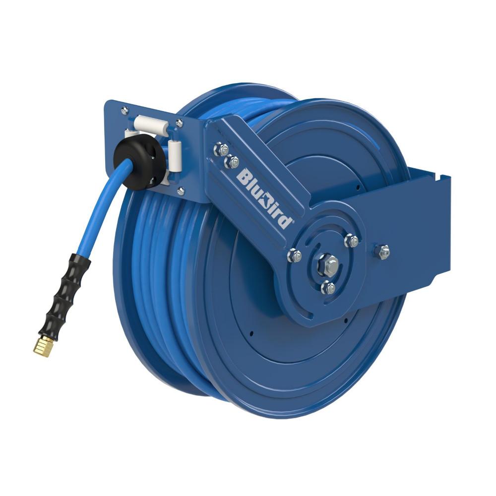 - Slangupprullaren "BluBird" är en tryckluftsslangupprullare med ett öppet stålhölje och en integrerad massiv gummislang (Ø 15,5 × 9,5 mm) med en längd på 20 m och en G 3/8 invändig gänganslutning.