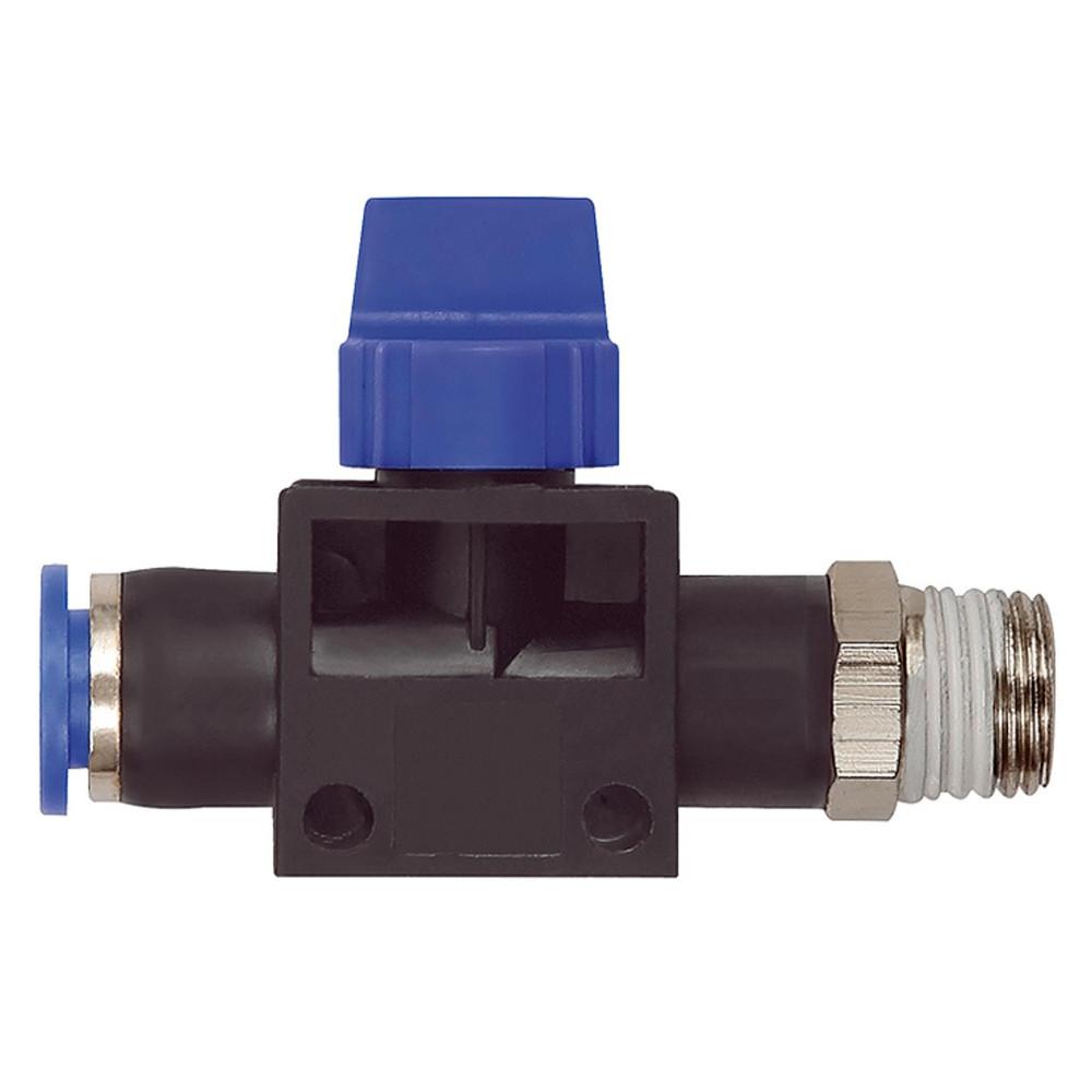 3/2-vägsventil, Blue Series - med snabbkoppling - utvändig gänga R 1/8 till R 1/2 - slangens ytterdiameter 6 till 12 mm - flödesriktning GS - arbetstryck 1,5 till 10 bar - max. arbetstryck (kortvarigt) 15 bar - plast/förnicklad mässing - pris per styck
