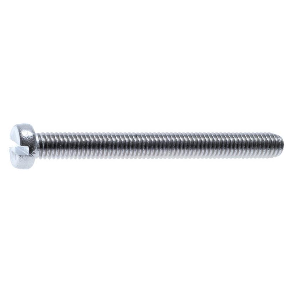- Skruven har en metrisk ISO-gänga och huvudet är spårat.
