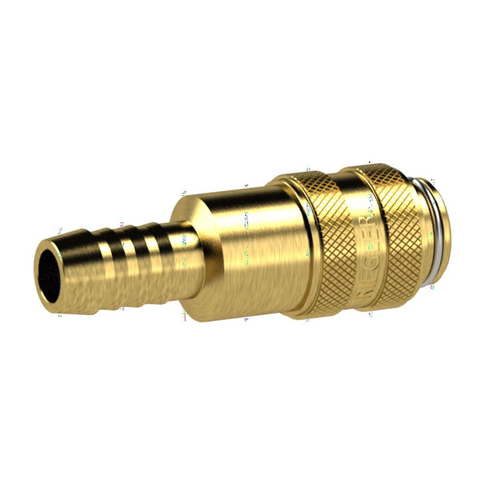 - Den ensidiga avstängningssnabbkopplingen är tillverkad av bar mässing och har en skotgänga och ett slangmunstycke.