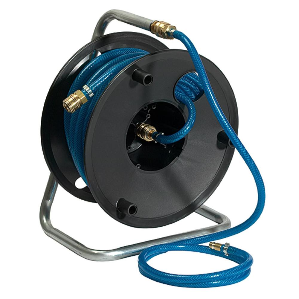- Tryckluftsslangvindan är utrustad med en 20 m lång PVC-tygslang Ø 12 x 6 mm.