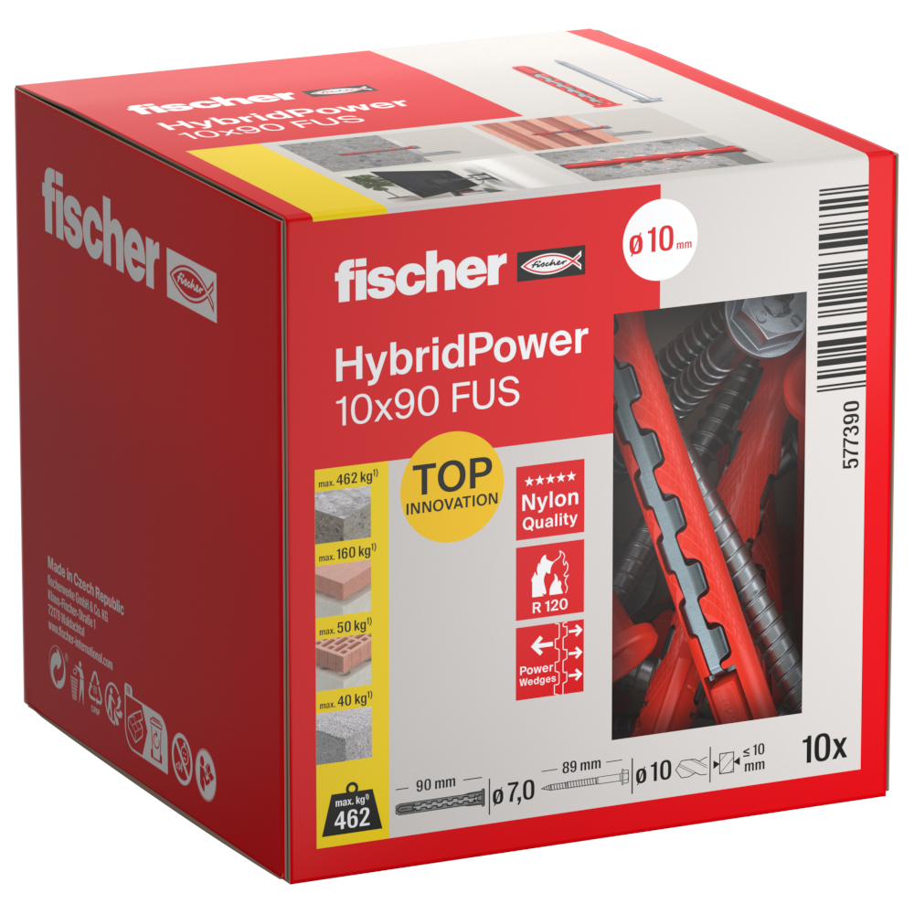 - fischer HybridPower 10 x 90 FUS kombinerar fördelarna med ett klassiskt plastankare med säkerheten hos ett stålankare.