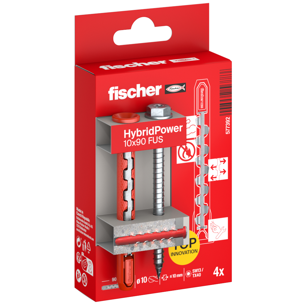 - fischer HybridPower 10 x 90 FUS kombinerar fördelarna med ett klassiskt plastankare med säkerheten hos ett stålankare.