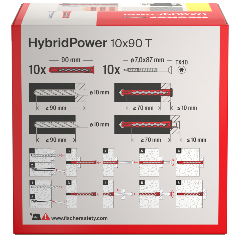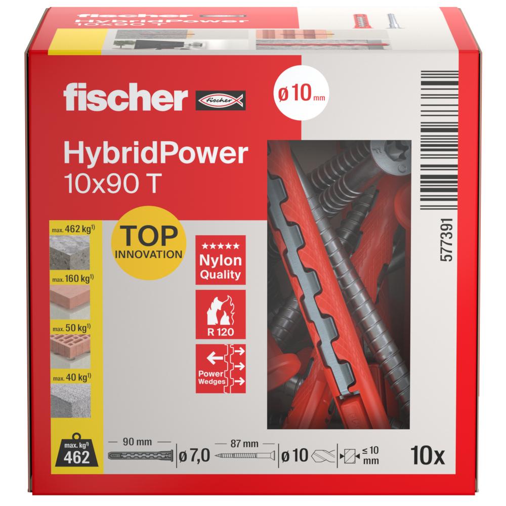 - fischer HybridPower 10 x 90 T kombinerar fördelarna med ett klassiskt plastankare med säkerheten hos ett stålankare.