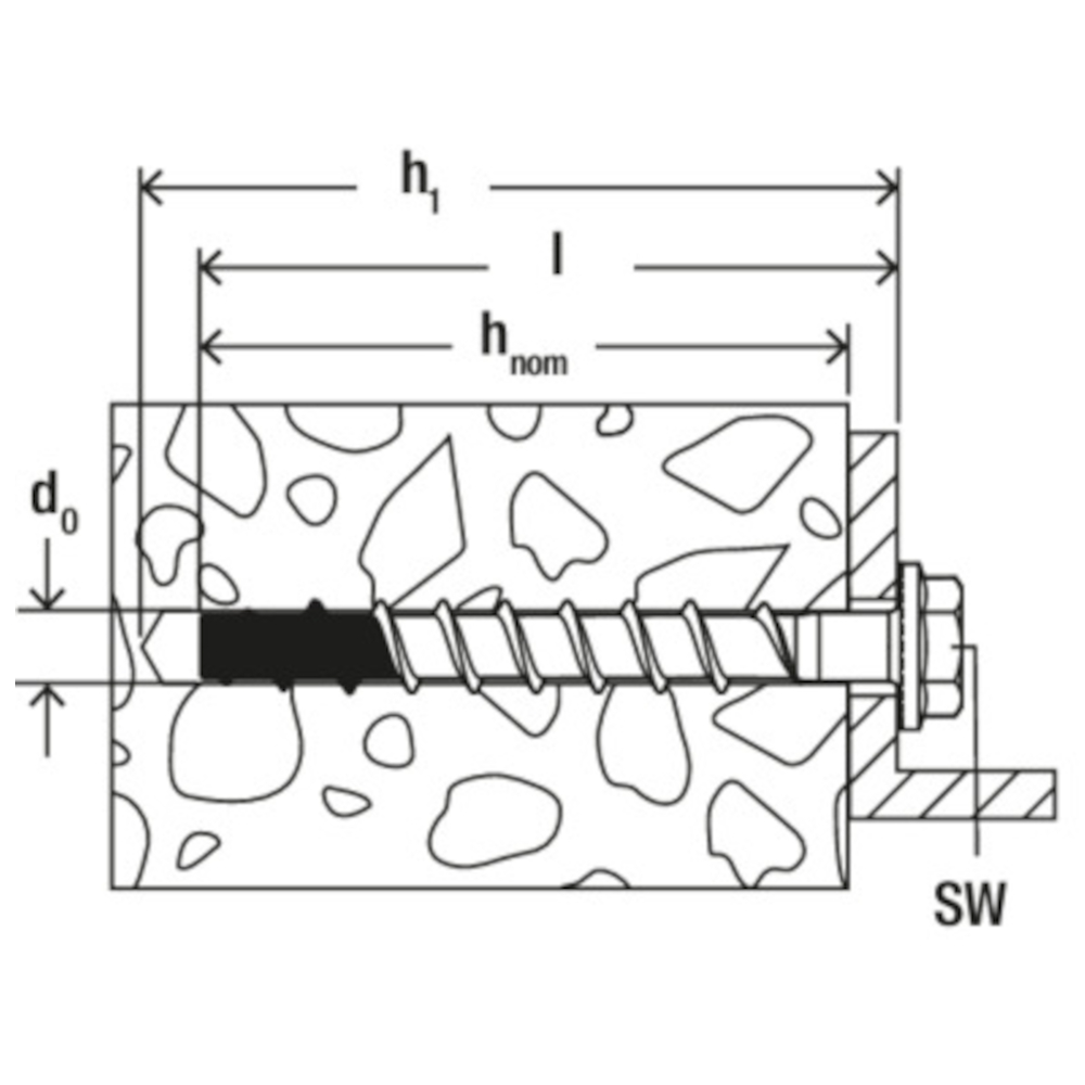 - Den är godkänd för användning på sprucken och osprucken betong C20/25 till C50/60 och är även lämplig för C12/15 betong, tätt murverk och massiva byggmaterial.